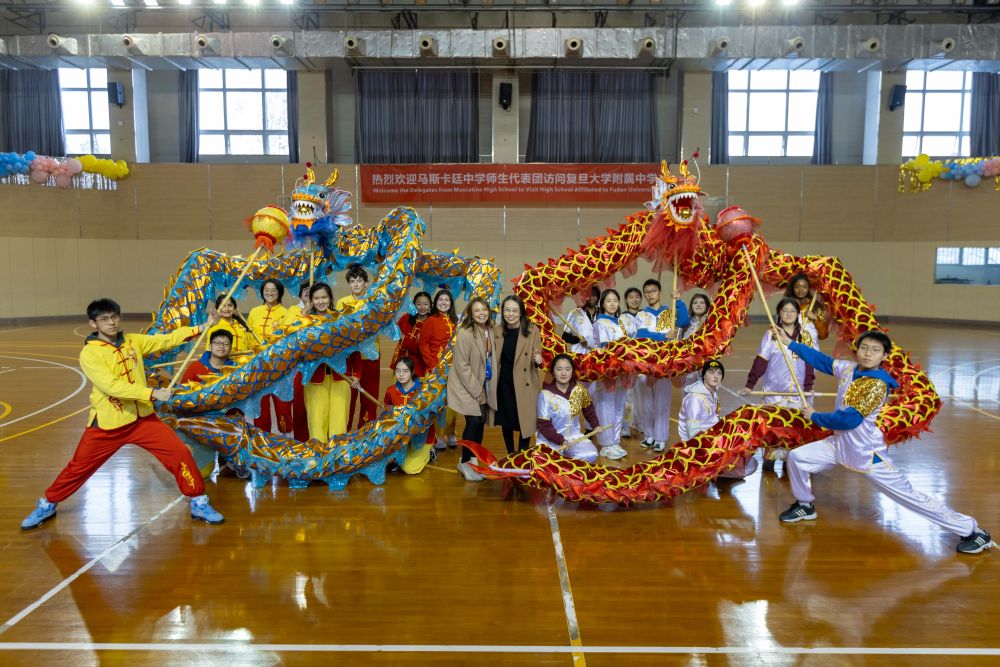 1月29日,马斯卡廷学生在上海参加舞龙体验活动。