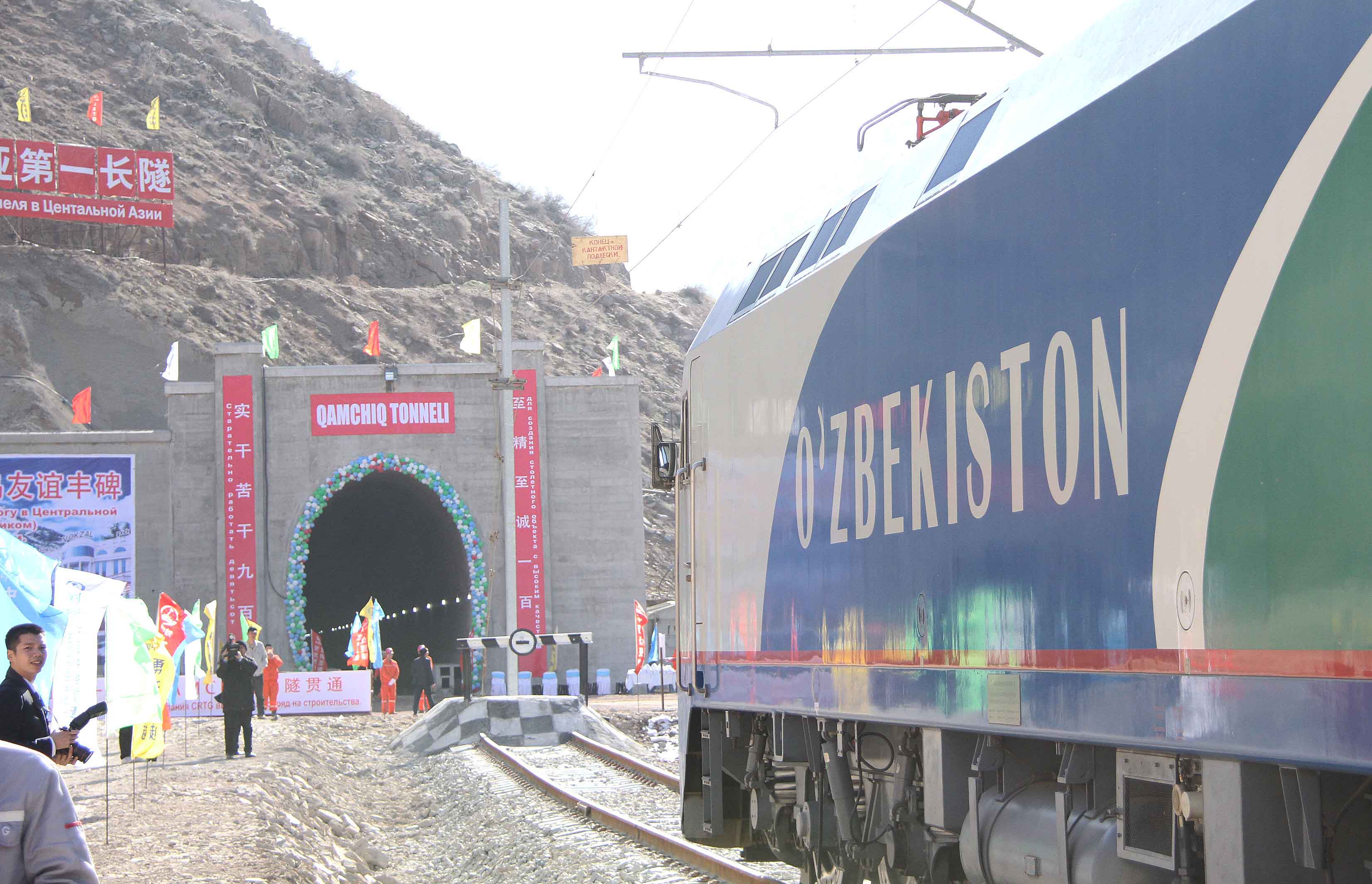 △ 2016年2月27日,一列专列停在乌兹别克斯坦安格连至琶布铁路甘姆奇克隧道进口。甘姆奇克隧道是中吉乌铁路的重要一环,对促进乌兹别克斯坦经济社会发展和共建“一带一路”倡议的实施具有重大意义。