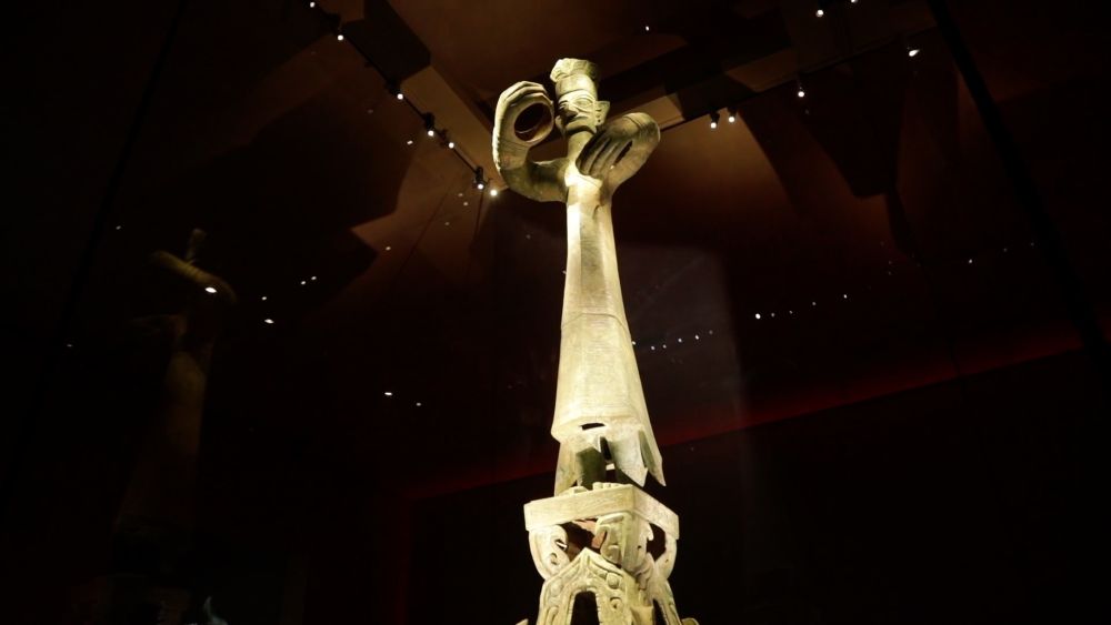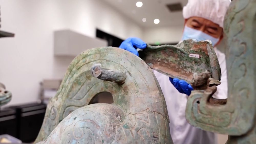 在一代一代考古工作者的手中,通天神树、青铜纵目面具、青铜鸟足神像……这些昔日蒙尘的器物恢复了原本的熠熠光彩。随着三星堆博物馆新馆建成投用,文化与科技在这里充分融合。