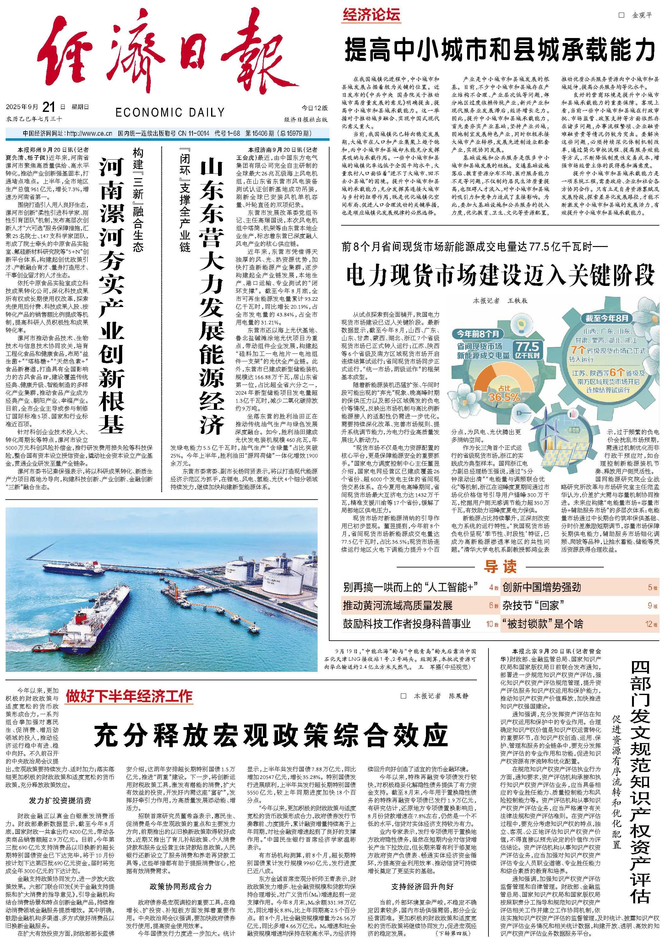 东营市还以海上光伏基地、鲁北盐碱滩涂地光伏项目为重点,带动组件企业发展,构建起“硅料加工—电池片—电池组件—支架”的光伏全产业链。此外,东营市已建成新型储能装机规模达166.88万千瓦,居山东省第一位,占比超全省六分之一,2024年新型储能项目发电量超1.3亿千瓦时,减少二氧化碳排放约9万吨。