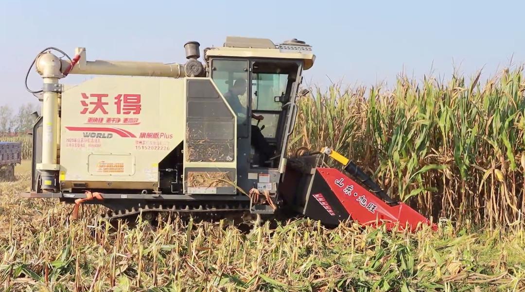 秋粮抢收,农机是关键“利器”。在巨野县玉米种植田里,多台履带式玉米收割机穿梭作业,一次性完成收割、摘穗、脱粒、秸秆粉碎还田。