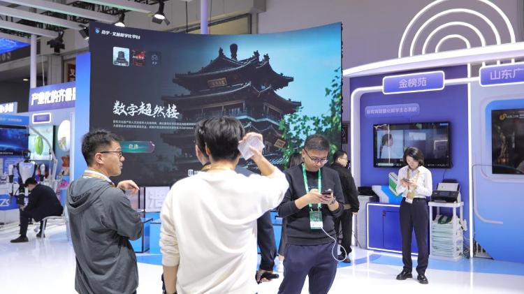 在山东展区,站在摄像头前,就可以“飞”入济南超然楼,感受不同季节、日夜交替下的绝美景色,从多维度深入了解其背后的历史内涵。据介绍,数字超然楼项目借助高精度航拍扫描技术和模型智能修复技术,实现毫米级的场景复刻,是数字版权与文旅融合的示范案例。
