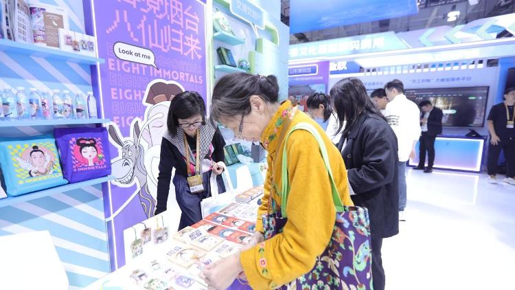 在“时尚化的齐鲁版权”板块,围绕“一山一水一圣人”文化名片及运河文化、中医药文化、八仙传说等特色文化开发的系列新IP产品集中亮相,深受观众喜爱。原来孔子也可以这么萌!由山东一见儒故文化创意有限公司推出的“夫子的祝福”“夫子的朋友圈”品牌,吸引国内外客商眼球。严肃认真的孔夫子化身萌态十足的Q版孔子,变身手办、公仔等文创产品,让夫子融入年轻人生活。