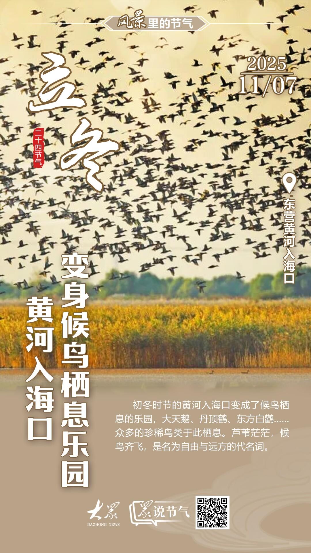 才感晚秋,忽而立冬。立,建始也,表示冬季自此开始。冬者,终也,万物收藏也。古人将二十四节气中的每个节气都三等分,每五日为一候,以三候来描述每个节气的气候变化特点。立冬的三候为:“一候水始冰,二候地始冻,三候雉入大水为蜃。” 一候水始冰,二候地始冻,这两候直观地表现了立冬前后天气的变化情况,气温骤降,开始出现冰冻现象。