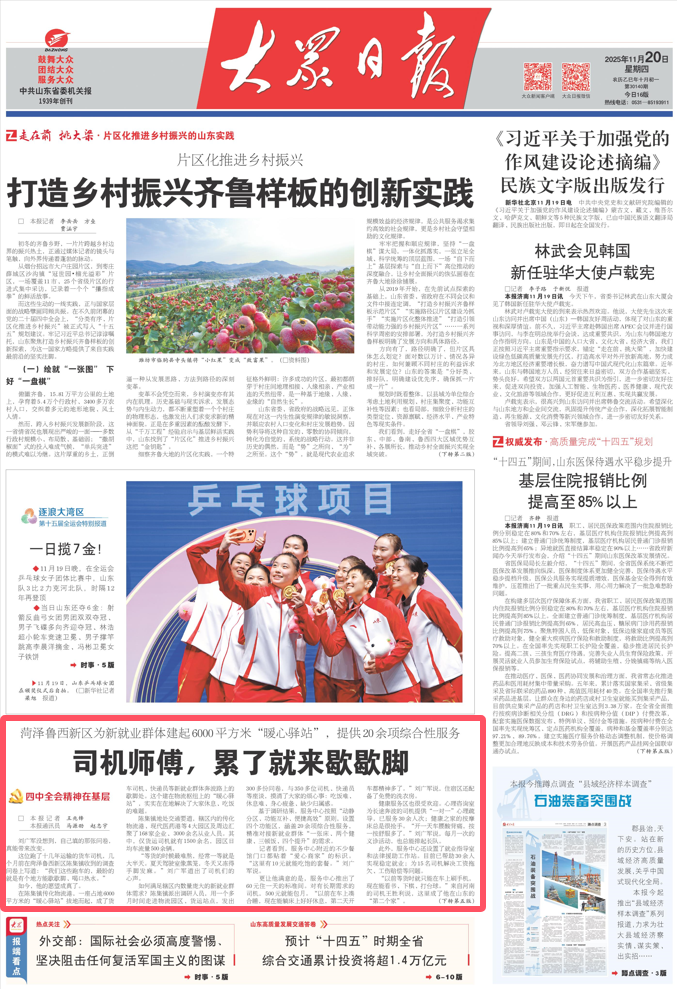 菏泽鲁西新区陈集镇党委书记李松说,将深入学习贯彻党的二十届四中全会精神,根据新就业群体的特点与需求,继续优化硬件设施,加大就业培训力度,吸引更多人加入“红色方向盘”志愿服务队,激发他们参与基层治理的潜能。