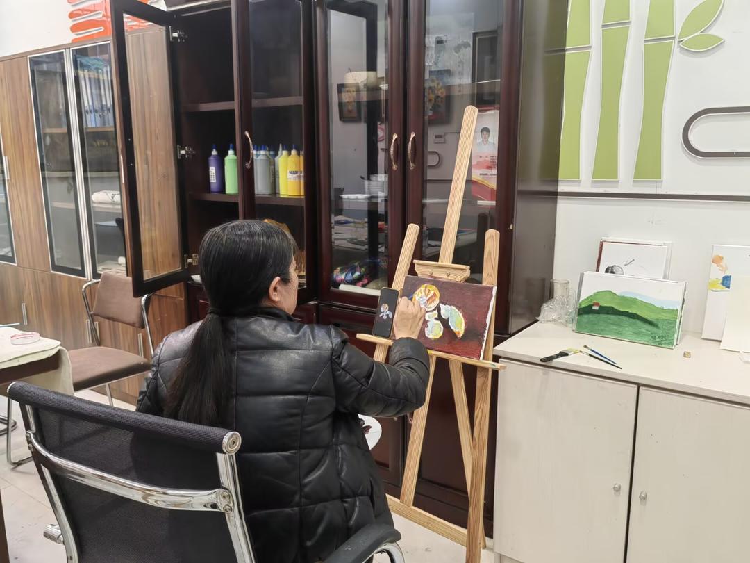 在东港区银海社区,“共享”“友善”的种子通过油画艺术悄然萌芽。“以前总觉得油画是‘高大上’的艺术,从没敢想这辈子能自己拿起画笔!”46岁的张相红脸上是藏不住的喜悦。今年,社区文化书院“隽飞工作室”开设公益油画课的消息,让热爱生活却从未接触过艺术的她眼前一亮。如今,她每周都会抽出三四次时间沉浸在色彩与光影的世界里,一坐就是一两个小时。