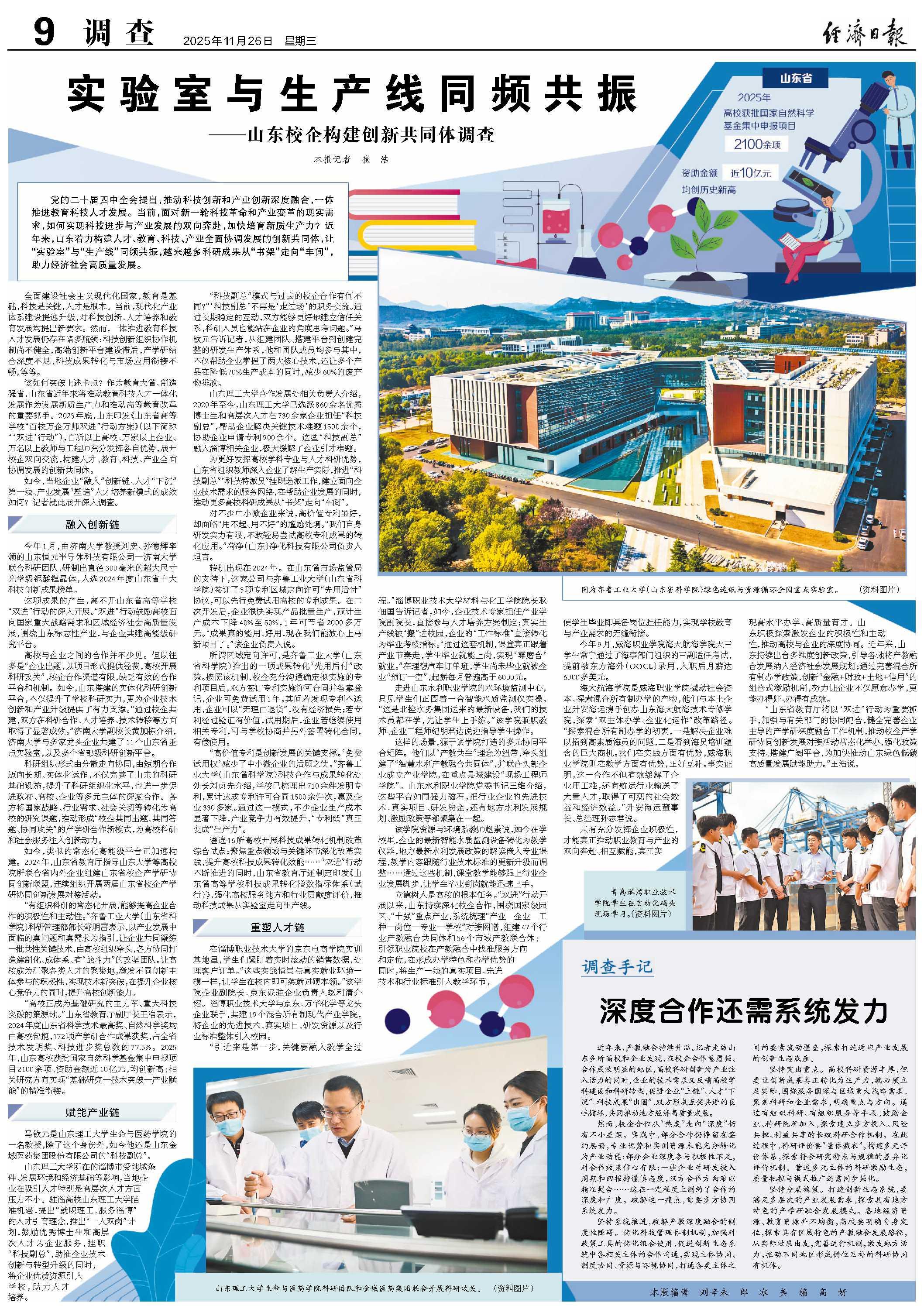 这项成果的产生,离不开山东省高等学校“双进”行动的深入开展。“双进”行动鼓励高校面向国家重大战略需求和区域经济社会高质量发展,围绕山东标志性产业,与企业共建高能级研究平台。