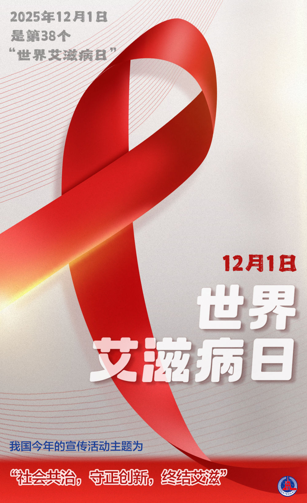 2025年12月1日是第38个“世界艾滋病日”,我国今年的宣传活动主题为“社会共治,守正创新,终结艾滋”。