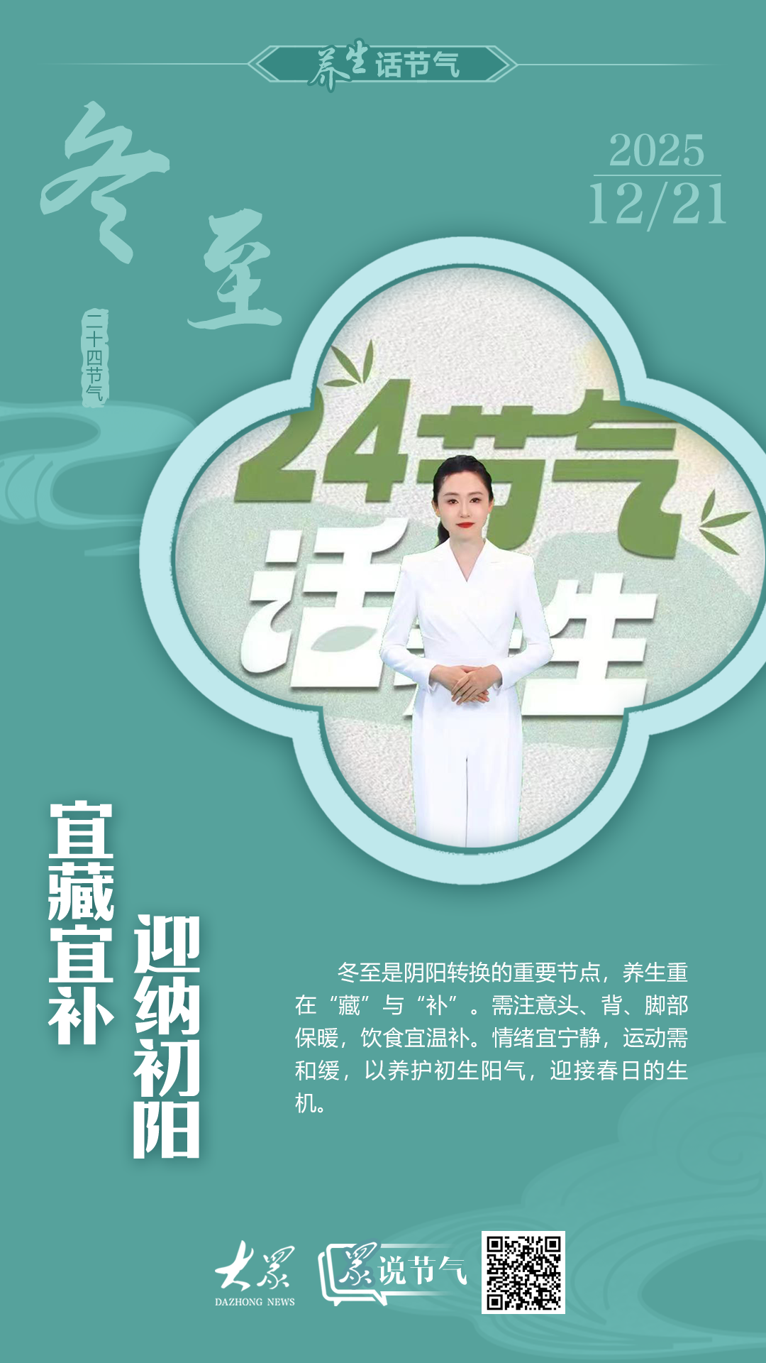 “天时人事日相催,冬至阳生春又来。”让我们顺应节律,涵养身心,以饱满的状态迎接春天的生机。