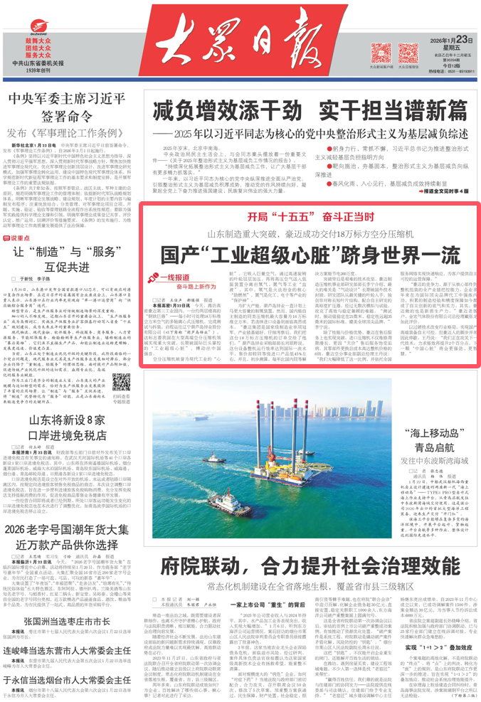 1月22日,潍坊高密豪迈第三工业园内,一台约两层楼高的“钢铁巨兽”——每小时可处理18万标准立方米空气的多轴离心式压缩机,完成测试与拆装,启程运往辽宁葫芦岛锌业股份有限公司(以下简称“葫芦岛锌业”)。这标志着我国在大型高端空分压缩机领域实现重大突破,长期被国际巨头掌控的“工业超级心脏”,搏动出中国强音。