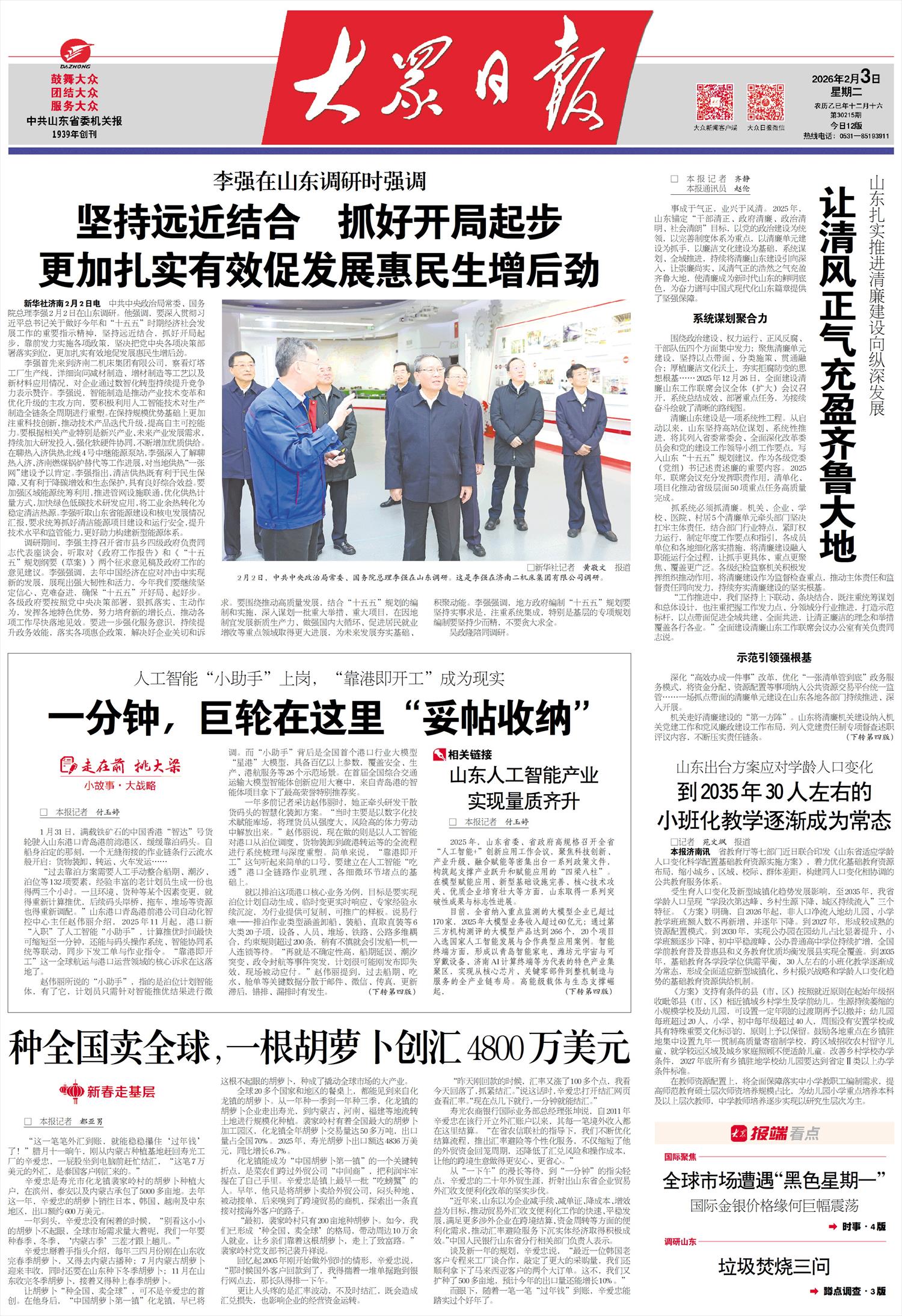 围绕政治建设、权力运行、正风反腐、干部队伍四个方面集中发力;聚焦清廉单元建设,坚持以点带面、分类施策、贯通融合;厚植廉洁文化沃土,夯实拒腐防变的思想根基……2025年12月26日,全面建设清廉山东工作联席会议全体(扩大)会议召开,系统总结成效、部署重点任务,为接续奋斗绘就了清晰的路线图。