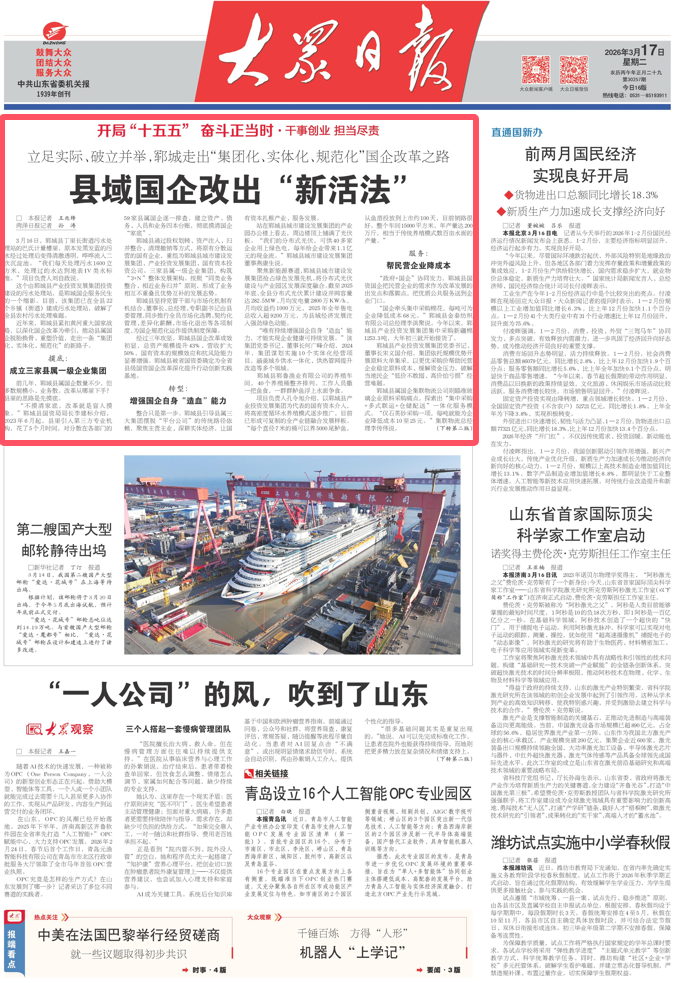 “郓城县属国企转型实践表明,只有立足实际、破立并举,才能实现从‘平台公司’向‘产业集团’、从‘城市提升’向‘城市运营’的转变,为县域国资国企高质量发展探索出可借鉴、可落地的路子。”李建标说。