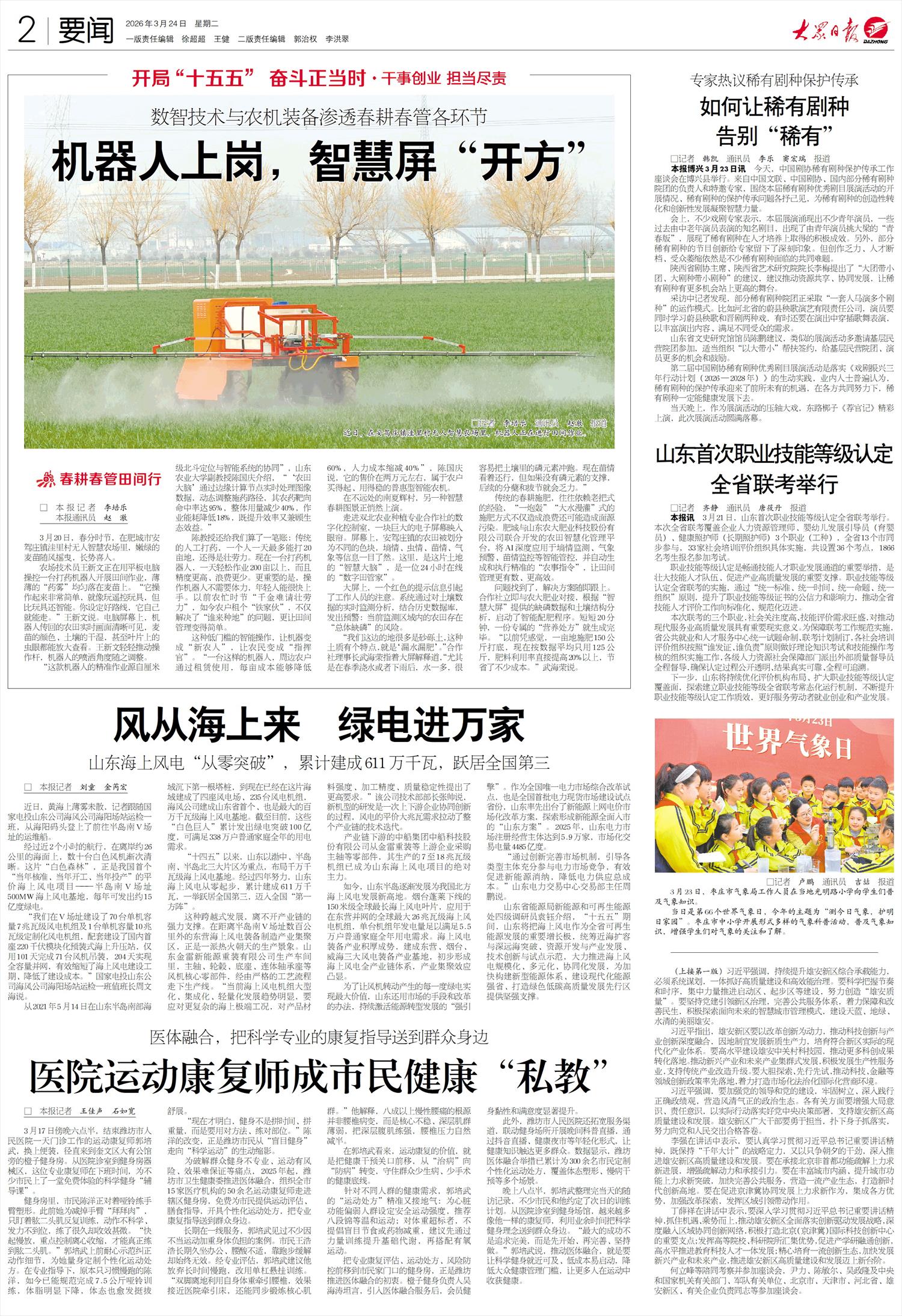 3月20日,春分时节,在肥城市安驾庄镇洼里村无人智慧农场里,嫩绿的麦苗随风摇曳,长势喜人。