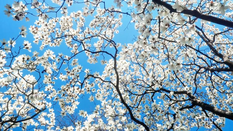被春风唤醒的,还有亭亭玉立的玉兰花。洁白素雅、粉嫩温婉的花朵挂满枝头,花瓣温润饱满,无叶相衬更显清丽脱俗,成为公园内一抹清新雅致的风景。
