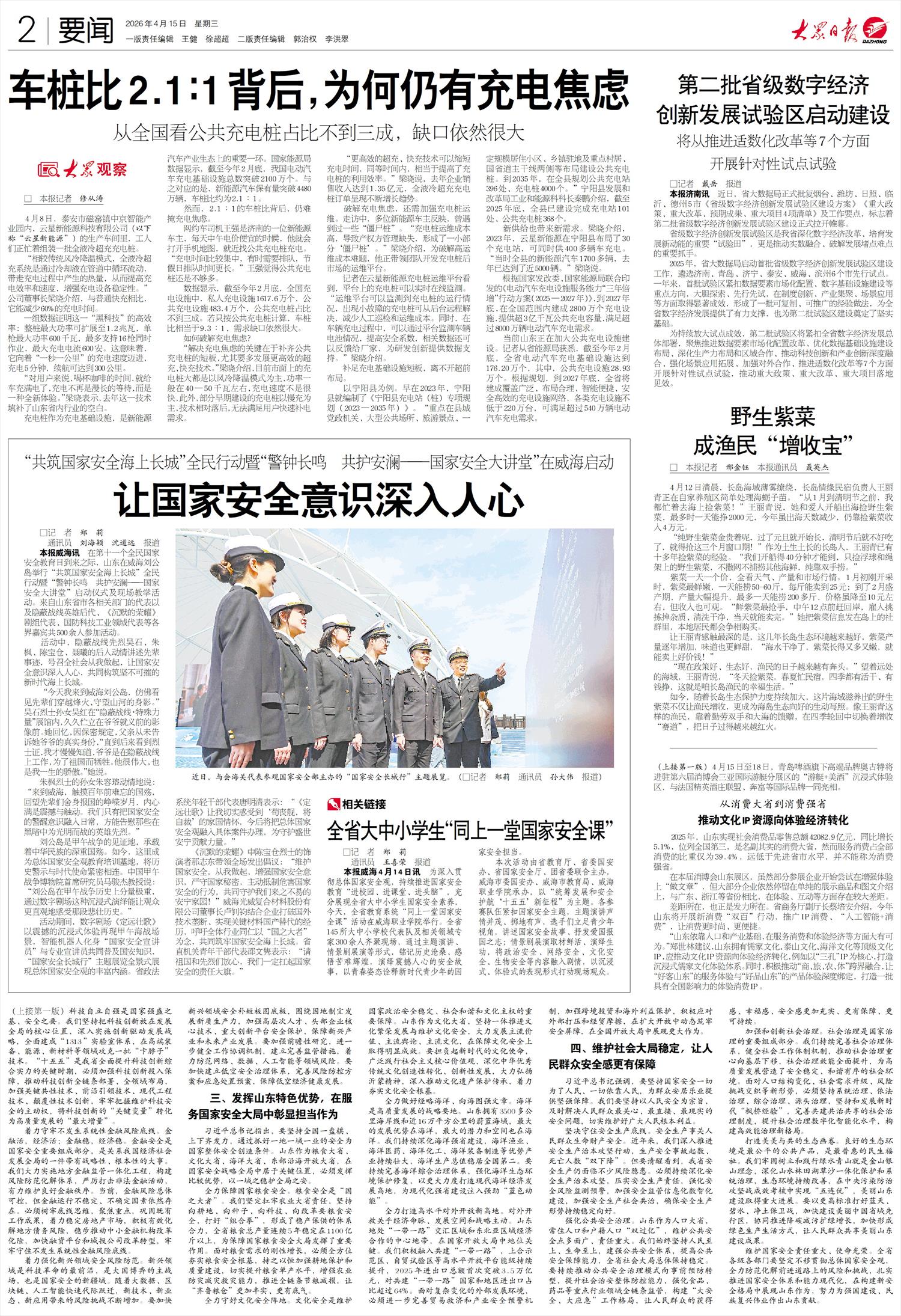 本报威海4月14日讯 为深入贯彻总体国家安全观,持续推进国家安全教育“进校园、进课堂、进头脑”,充分展现全省大中小学生国家安全素养,今天,全省教育系统“同上一堂国家安全课”活动在威海职业学院举行。全省145所大中小学校代表队及相关领域专家300余人齐聚现场,通过主题演讲、情景剧展演等形式,铭记历史沧桑、感悟苦难辉煌,演绎震撼人心的安全故事,以青春姿态诠释新时代青少年的国家安全担当。