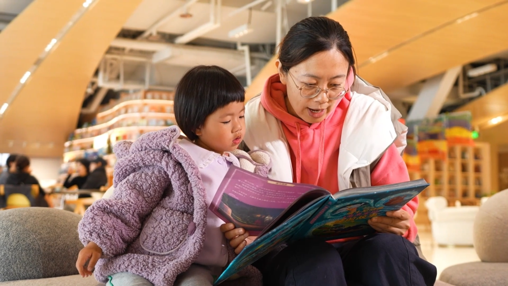 在山东省威海市环翠区至海港湾的“至海空间”,环翠区“童享未来”亲子阅读推广活动正在举行。主讲人带领家长和孩子一起阅读有关生命成长的绘本,通过图片、文字相结合的方式,感受书本的魅力。