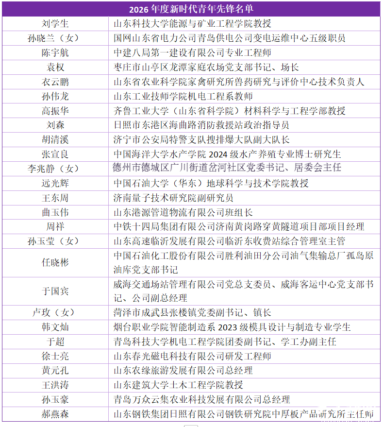 2026年4月27日上午,2026年度中国青年五四奖章暨新时代青年先锋奖评选结果揭晓。山东2人和1个集体荣获2026年度中国青年五四奖章,多人荣获2026年度新时代青年先锋荣誉。