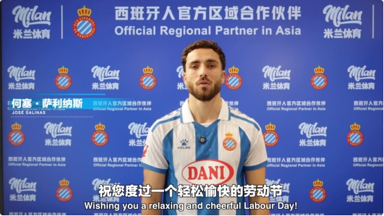 在与米兰体育联合发布的祝福内容中,西班牙人俱乐部多位球员出镜表达节日问候,包括前锋克莱门斯·里德尔、中场拉蒙·特拉茨、边锋米格尔·鲁维奥、后卫查尔斯·皮克尔以及前锋何塞·萨利纳斯。通过简洁而直接的表达,向广大劳动者传递节日祝福。其中,克莱门斯·里德尔用诚挚的中文说道:“劳动节快乐,放松身心,祝大家好好享受假期。”言语朴实而真切,也从侧面体现出职业球员对劳动与付出的理解与尊重。