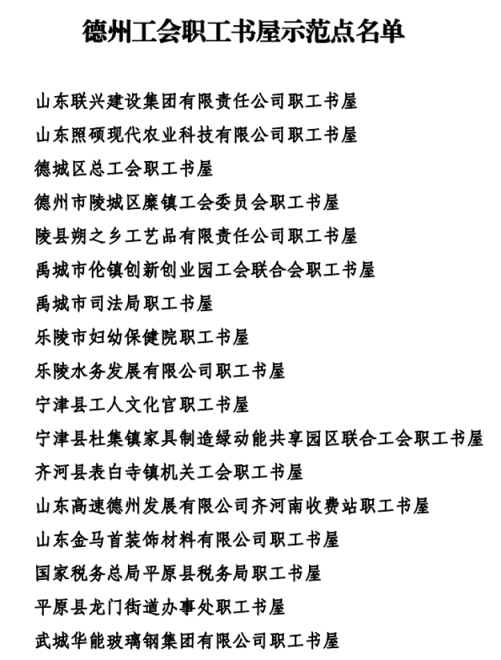 经严格审核,市总工会决定命名山东联兴建设集团有限责任公司等30家单位职工书屋为“德州工会职工书屋示范点”。今后,被命名的职工书屋将不断创新工作,发挥读书骨干带头作用,广泛建立读书会、阅读俱乐部、学习小组、文化沙龙等各类职工读书组织,开展丰富多彩的阅读活动,吸引广大职工积极参与到职工读书活动中来,不断扩大职工书屋的影响力。