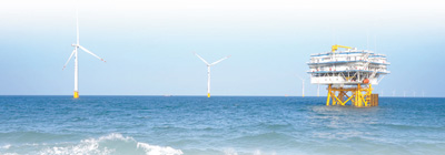 山东省海阳市南部海域,一台台风电机矗立海上,把清洁能源输送到千家万户。聂东磊摄(人民视觉)