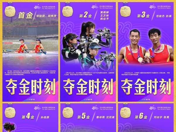 9月24日杭州亚运会首个金牌日中国队已连续收获9枚金牌集齐杭州亚运会第1个九宫格自豪!骄傲!祝贺!
