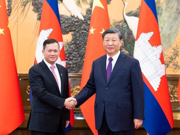 9月的北京,步入初秋。15日上午,国家主席习近平在人民大会堂会见来华进行正式访问的柬埔寨首相洪玛奈。 洪玛奈首相就任后选择中国作为第一个进行双边访问的国家,充分体现了柬埔寨新一届政府对巩固和发展中柬