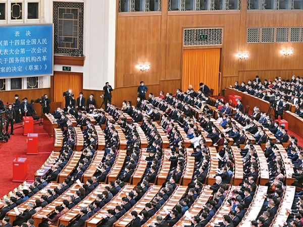 推进国家治理体系和治理能力现代化的集中部署《求是》杂志编辑部 “通过!” 2023年3月10日上午9时许,北京人民大会堂大礼堂。2900多名全国人大代表按下表决器,十四届全国人大一次会议表决通过了