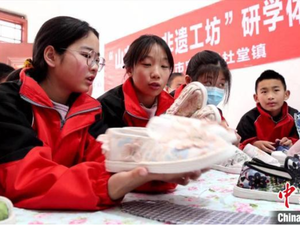 图为安丘市石埠子小学研学点开设剪纸课程。 安丘市委宣传部供图 中新网济南6月14日电(吕妍)“小荷才露尖尖角,早有蜻蜓立上头......”在山东省潍坊市安丘市实验小学近日举行的一场研学活动中,一首首