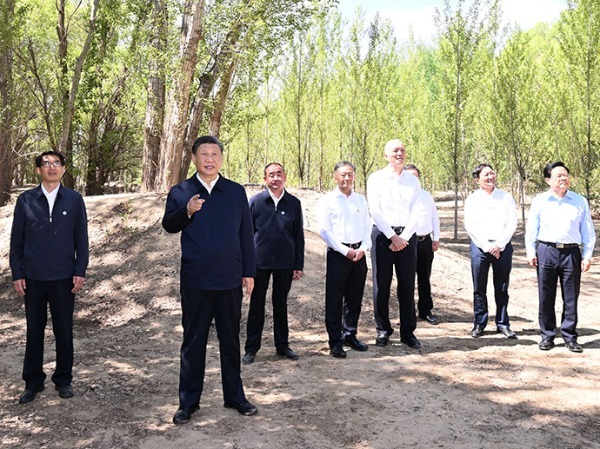 6月5日至6日,习近平总书记来到内蒙古自治区巴彦淖尔市,深入自然保护区、现代农业示范园区、林场、水利部门等考察调研,主持召开加强荒漠化综合防治和推进“三北”等重点生态工程建设座谈会并发表重要讲话。总书