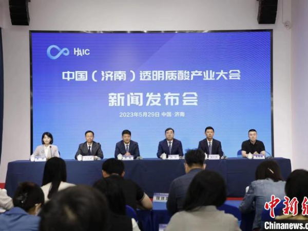 济南市委市政府29日召开新闻发布会,介绍即将召开的中国(济南)透明质酸产业大会的有关情况。 孙婷婷 摄 中新网济南5月29日电(孙婷婷)济南市工信局副局长魏斌5月29日通报,该市已建成全球最大的透明