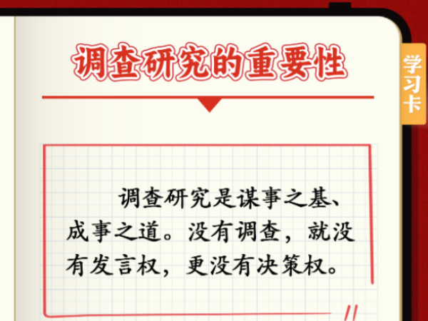 中共中央办公厅不久前印发《关于在全党大兴调查研究的工作方案》。方案指出,党中央决定,在全党大兴调查研究,作为在全党开展的主题教育的重要内容,推动全面建设社会主义现代化国家开好局起好步。习近平总书记高度
