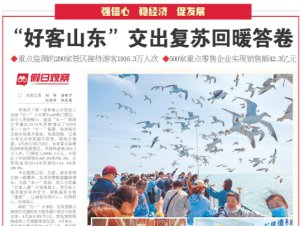 这个“五一”假期,“好客山东”是毫无疑问的顶流。济南、青岛、淄博、威海……齐鲁大地放眼望去,到处都是“人从众”。记者从省文化和旅游厅获悉,据统计调查,4月29日至5月3日,全省重点监测的200家旅游景