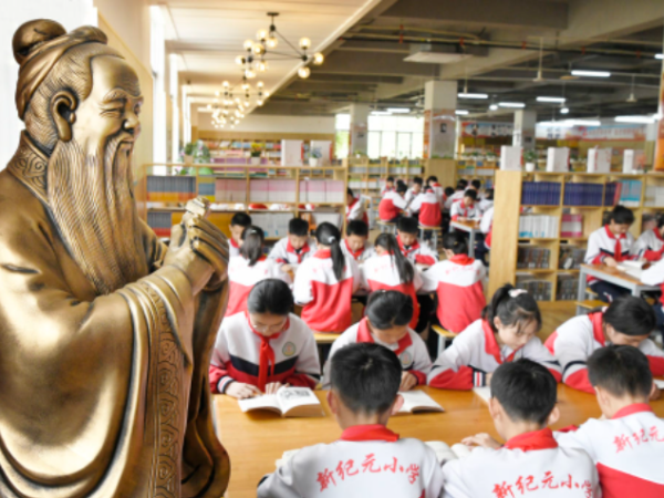 新华社客户端济南4月24日电(记者范长国)4月23日是世界读书日,山东各地的人们共享开卷之美、阅读之乐,齐鲁大地充盈书香,全民阅读蔚然成风。4月20日,山东省枣庄市山亭区新纪元小学的学生在阅览室读书。