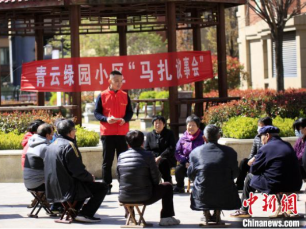 图为安丘市青云绿园小区马扎会现场。 安丘宣传部供图 中新网济南4月24日电(记者沙见龙)“重新铺设下水管道,是大家受益的大好事,我们可以多方筹集资金”“铺设管道工程所需资金是多少?我建议征求意见时要