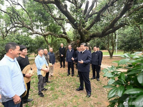 4月11日,习近平总书记在广东省茂名市高州市根子镇柏桥村考察荔枝种植园、龙眼荔枝专业合作社,了解当地发展荔枝等特色种植业、推进乡村振兴等情况。