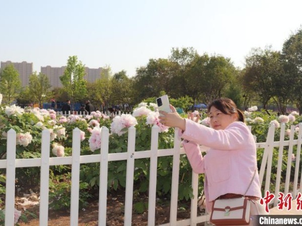 市民游客观赏牡丹,拍照留念。 李明芮 摄 中新网菏泽4月8日电(李明芮)第32届菏泽国际牡丹文化旅游节4月7日晚在“中国牡丹之都”山东菏泽开幕,助菏泽牡丹“香飘世界”,邀海内外宾朋共赴国色天香之约。