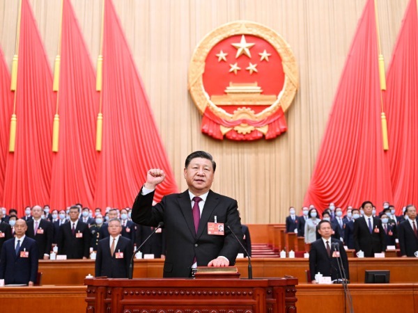 2023年3月10日,十四届全国人大一次会议在北京人民大会堂举行第三次全体会议。习近平全票当选为中华人民共和国主席、中华人民共和国中央军事委员会主席。这是习近平进行宪法宣誓。新华社记者谢环驰摄新华社北