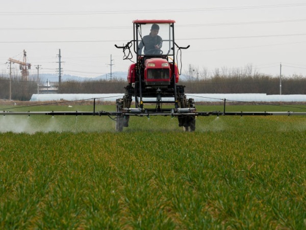天地启春色,万物生新意。2023年春耕时节,记者深入齐鲁大地田间地头,感受齐鲁大地上的“三农”新图景。2月22日,山东省嘉祥县龙腾农机作业服务专业合作社机手驾驶植保机为麦田施肥。(新华社记者朱峥摄)2