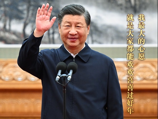 1月18日,中华民族传统节日春节即将到来之际,习近平总书记在人民大会堂,同新疆、河南、北京等地基层干部群众视频连线,看望慰问能源保供企业的员工、高铁站的干部职工、农产品批发市场的商户和群众,给大家送去
