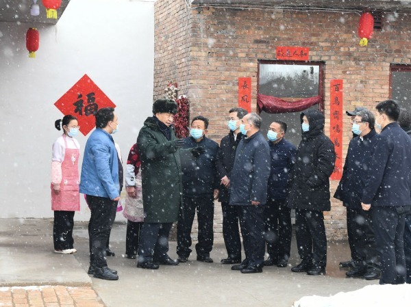 2022年1月26日至27日,中共中央总书记、国家主席、中央军委主席习近平来到山西,看望慰问基层干部群众。这是26日下午,习近平在临汾市霍州市师庄乡冯南垣村受灾村民师红兵家看望。 新华社记者谢环驰摄
