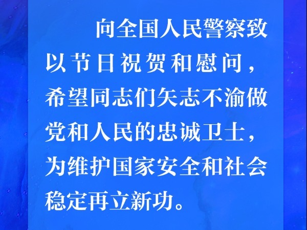 联播+“中国人民警察节”前夕,习近平总书记代表党中央,向全国人民警察致以节日祝贺和慰问,希望同志们矢志不渝做党和人民的忠诚卫士,为维护国家安全和社会稳定再立新功。党的十八大以来,以习近平同志为核心的党