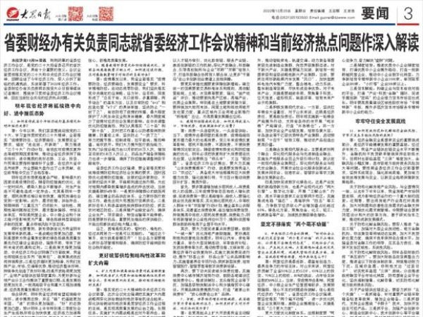 省委财经办有关负责同志就省委经济工作会议精神和当前经济热点问题作深入解读 2022-12-25大众日报03版 本报济南12月24日讯刚刚闭幕的省委经济工作会议,是党的二十大后省委召开的首次经济工作