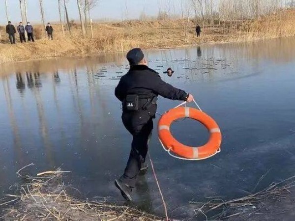12 月21日,德州市公安局陵城分局义渡口派出所接到报警:老马颊河有人掉进冰窟窿!民警带上救援设备火速赶往现场。