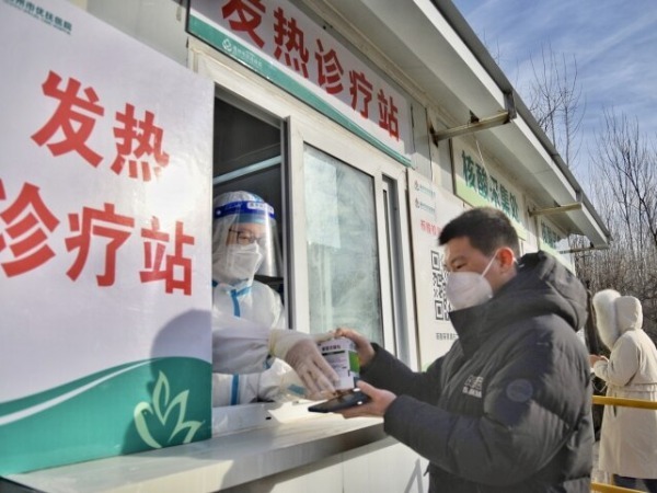 12月21日上午8时许,在位于德州天衢新区国防路的一家建设大药房门前早已排起长队,周围市民相继在此领取了“布洛芬”(退烧药)每人次4粒。其间,有群众拍摄视频发送朋友圈,对药房善举连连称赞。