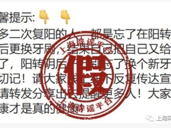 最近,一张“温馨提示”的截图在圈群传播,称“很多二次复阳的人,都是因为忘了在阳转阴之后更换牙刷,结果自己把自己又给感染了。”真是这样的吗?
