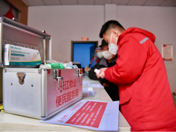 12月20日上午,在德城区东海巴黎城小区物业服务中心,业主林先生因家中13岁的外甥高烧前来求助,物业工作人员连忙从“共享药箱”中拿出退烧药,面对这救急的暖心药品,林先生连忙道谢。