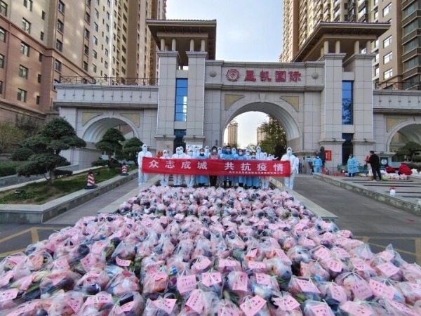 11月4日下午,满载新鲜蔬菜的车辆缓缓驶入天衢新区星凯国际小区,物业十几名工作人员,正在分装来自德州市房屋开发集团捐赠的蔬菜包,为保障居民“菜篮子”,将从即日起至6日,为小区三千余户业主和工作人员分批发放蔬菜包,总价值17余万元。