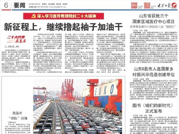 □本报记者魏然山东省出席党的二十大代表返回工作岗位后,第一时间来到干部群众中间,宣讲党的二十大精神,和大家一起学报告、谈体会、议发展、话落实,团结鼓舞大家在新征程上埋头苦干、担当作为,以接续奋斗创造更