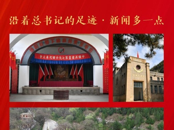 27日上午,习近平总书记带领中共中央政治局常委李强、赵乐际、王沪宁、蔡奇、丁薛祥、李希瞻仰了中共七大会址新华社记者鞠鹏摄中共七大会址即中央大礼堂位于陕西延安城西北的杨家岭革命旧址筹建于1940年,建成