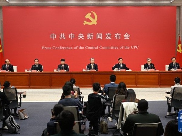 10月24日上午,中共中央举行新闻发布会,介绍解读党的二十大报告。中央政法委秘书长陈一新,中央政策研究室主任江金权,中央改革办分管日常工作的副主任、国家发展改革委副主任穆虹,中央纪委国家监委宣传部部长王建新,中央办公厅副主任兼调研室主任唐方裕,中央宣传部副部长孙业礼等有关方面负责人解读党的二十大报告并回答记者关心的问题。